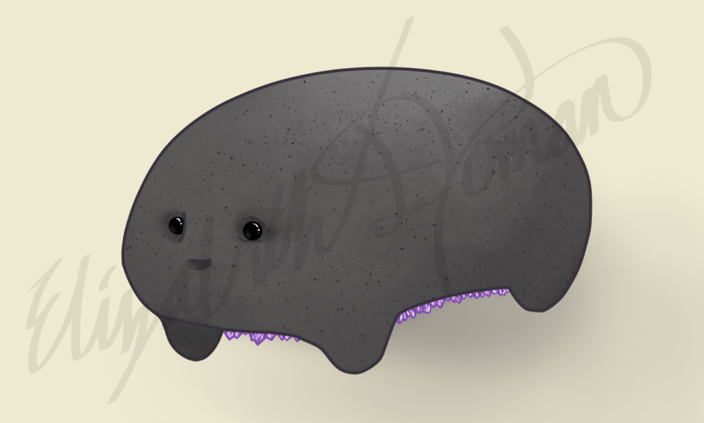 I stared at that egg for a little bit and then reached over to touch it but before I could, it unrolled. I couldn’t quite believe it. Rock is hard, immovable, only changed by abrupt hard force or long soothing force like picks or rivers. But this rock just… unrolled like putty. The granite-like exterior molded and there was a small face looking up at me. It had eyes like spheres of polished obsidian and a tiny pocket of a mouth. No visible nose that I could see. And its belly was concave and spiked with quartz crystals like some kind of reverse hedgehog. It stood on small nubs that moved when it walked, but right at that moment, it was holding still and staring at me with utter fascination.